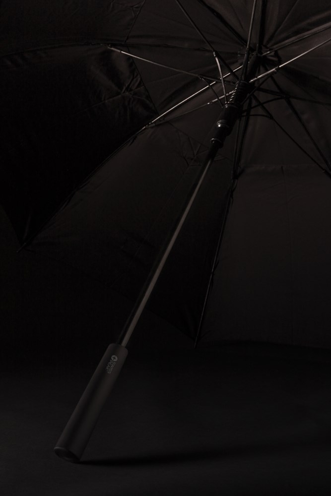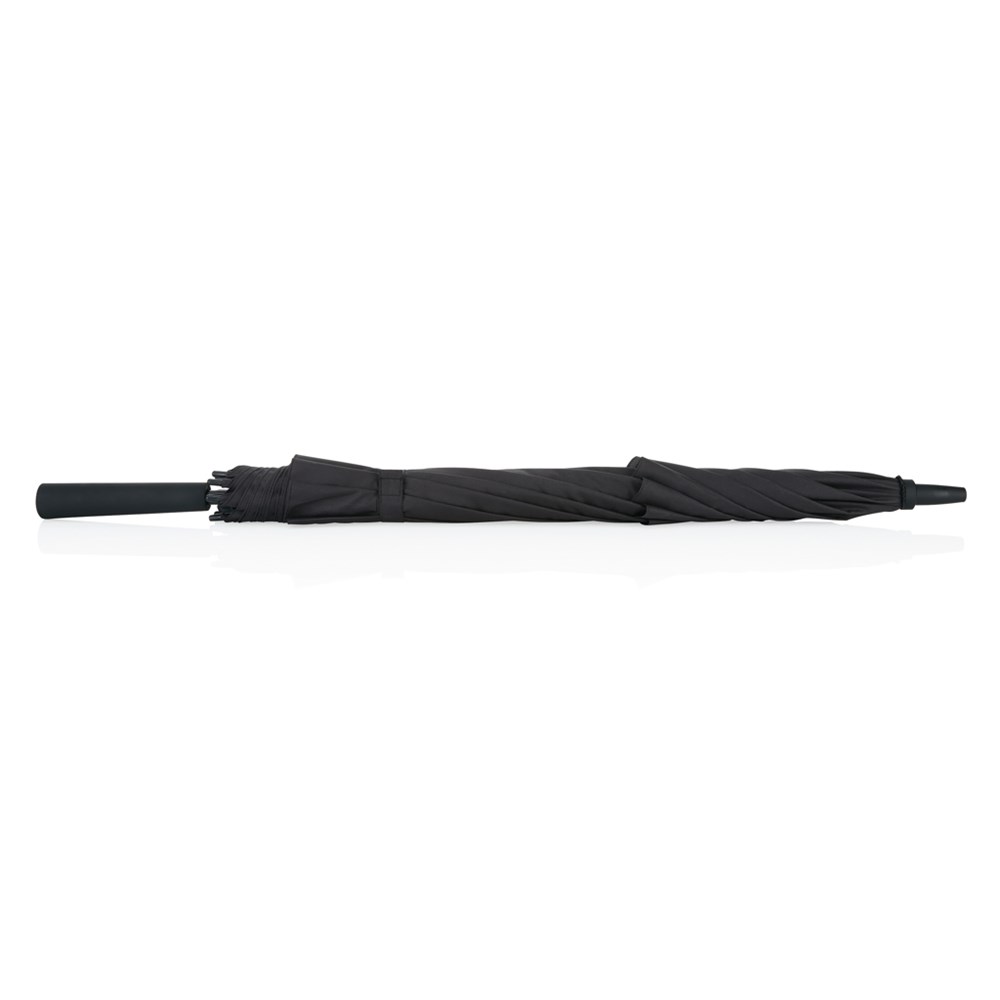The Swiss Peak AWARE™ Tornado 23 inch storm umbrella features 190T pongee RPET and is a premium quality accessory designed for harsh weather. Its auto open/manual close and windproof system provide ease of use and dependability. With a metal shaft and full fibreglass frame, this umbrella offers strength and durability. The straight ABS rubber finished handle is comfortable to grip and it comes with a Swiss Peak FSC kraft gift box. With AWARE™ tracer that validates the genuine use of recycled materials. 2% of proceeds of each Aware™ product sold will be donated to Water.org.