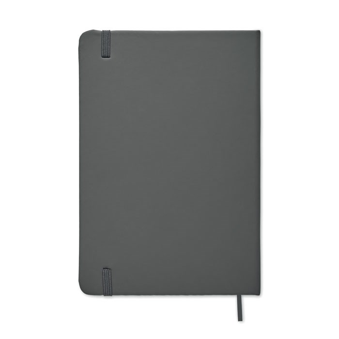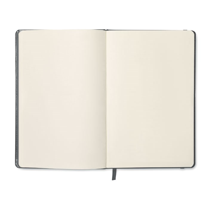 A5 notebook with hard PU cover. Casebound. 192 plain recycled paper pages (96 sheets). Matching elastic closure strap and ribbon page-marker. FSC®-certified | FSC MIX CREDIT, P7.1, FSC-C213206