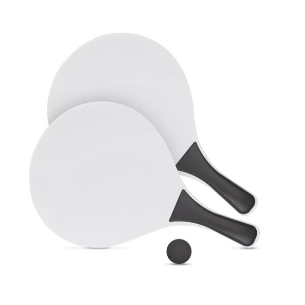 Beach tennis set consisting of 2 MDF rackets and 1 soft ball.