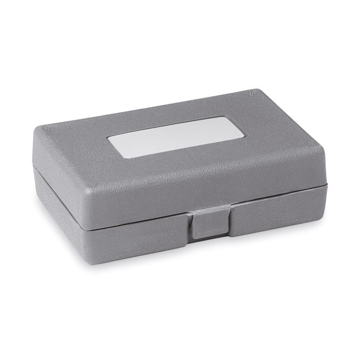 Foldable 25 pieces tool set including tweezers, 6 pc screwdriver set, extender, 4 pc socket set, flat-nose pliers, cutting pliers, and a 10pc bit set packed in a plastic box.