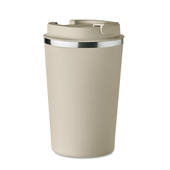 Double wall stainless steel tumbler with PP lid. Capacity: 350 ml. Leak free.