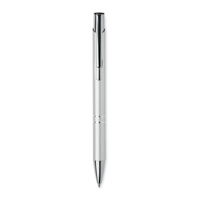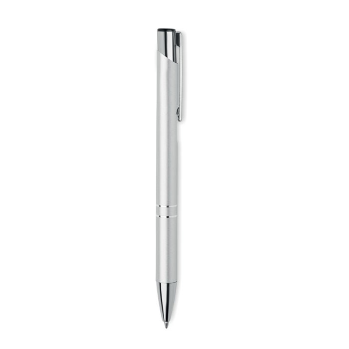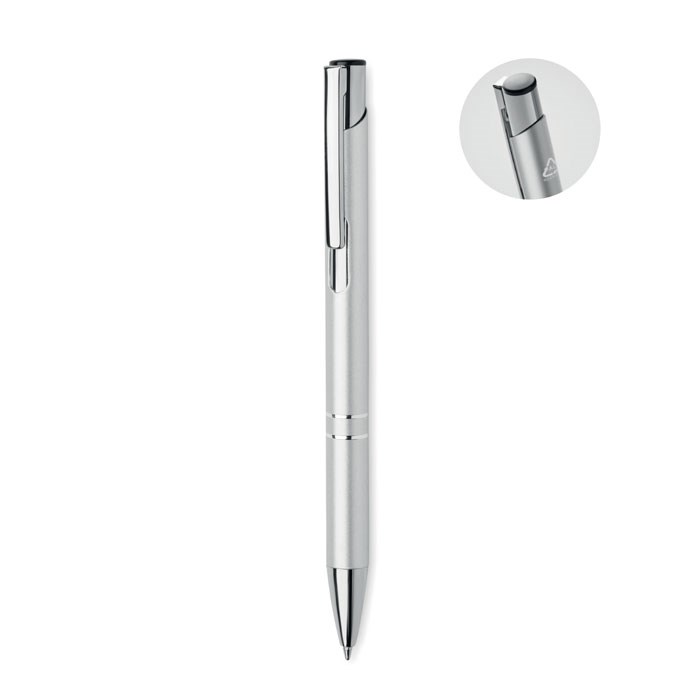 Push button ball pen in recycled aluminium. Blue ink.