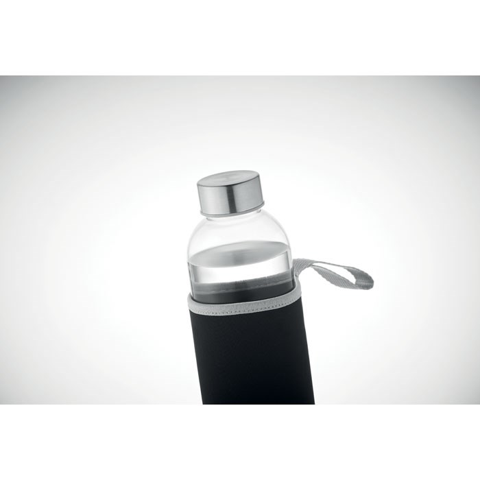 Glass bottle with neoprene pouch in 750 ml. Not suitable for carbonated drinks. Leak free.