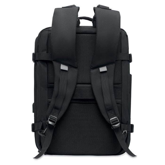 Travel Tech backpack in 600D RPET polyester. Modular / including several compartments.