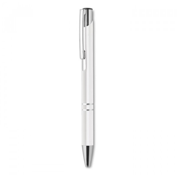 Push button ball pen in recycled aluminium. Blue ink. A classic and simple designed office essential. The aluminium barrel gives it a more premium look.