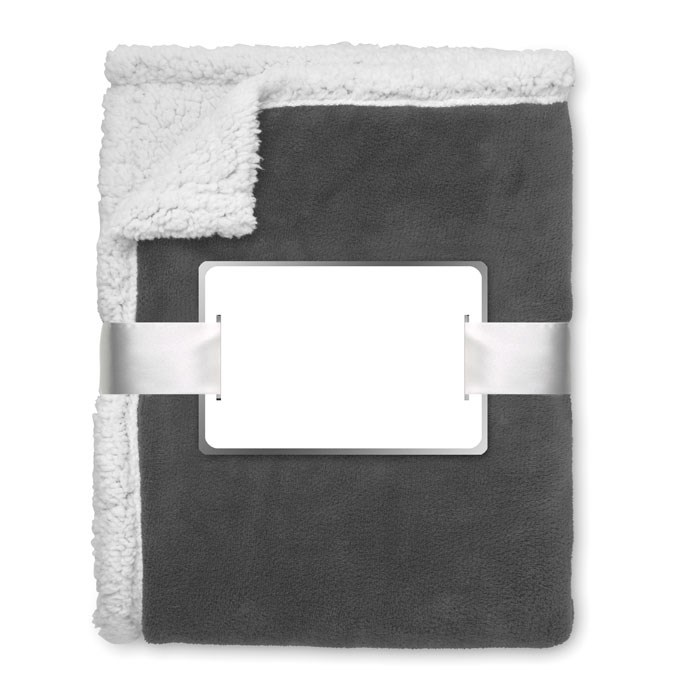 200 gr/m² coral fleece blanket with reversible 220 gr/m² polyester sherpa lining. Wrapped in ribbon and printable card.
