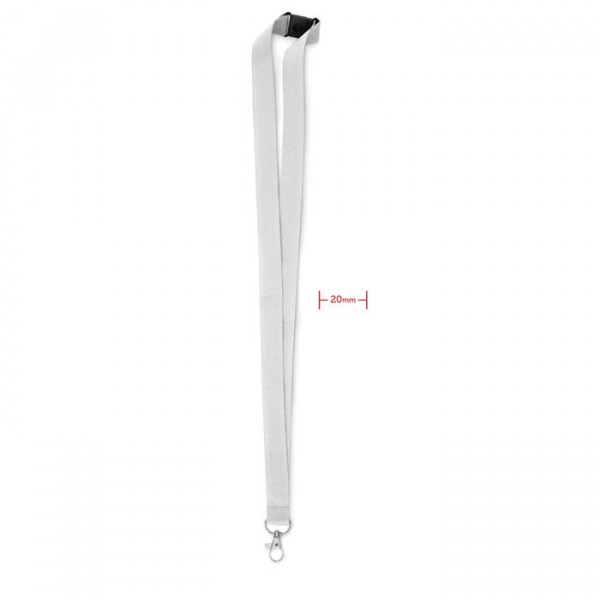 Lanyard with metal hook and safety breakaway. 20 mm wide. Sublimation print available on white item only.