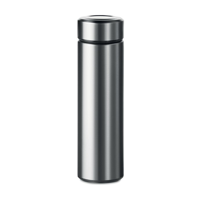 Double wall stainless steel insulating vacuum flask with additional tea infuser. Capacity 425 ml. Leak free.