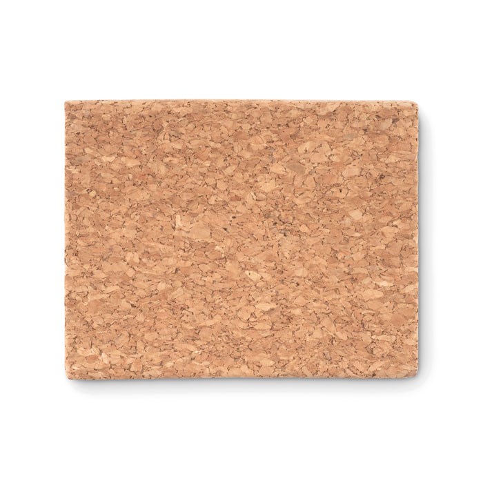 3 piece sticky note memo pad with hard cork cover. 50 sheets of large and 25 sheets of medium yellow recycled paper sticky notes pads and 5 assorted colours page markers.