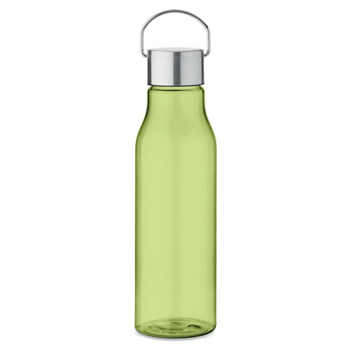 Drinking bottle in RPET which is BPA free and stainless steel cap with lid handle. Leak free. Capacity: 600 ml.