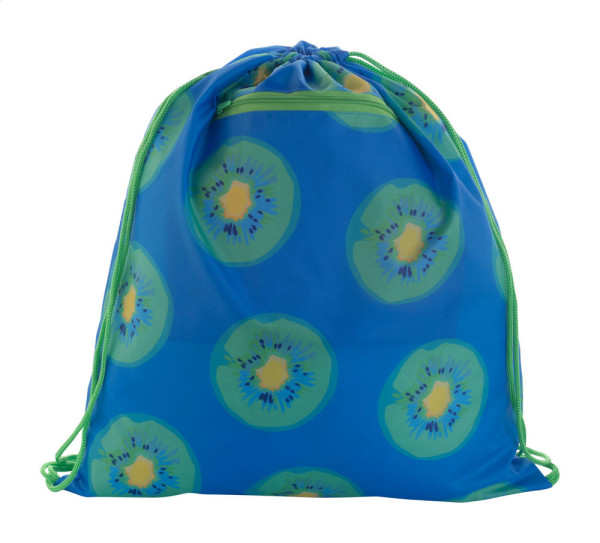 Custom made drawstring bag with zipped, RFID protected front pocket, 190T polyester. With all over sublimation printed graphics. MOQ: 25 pcs.