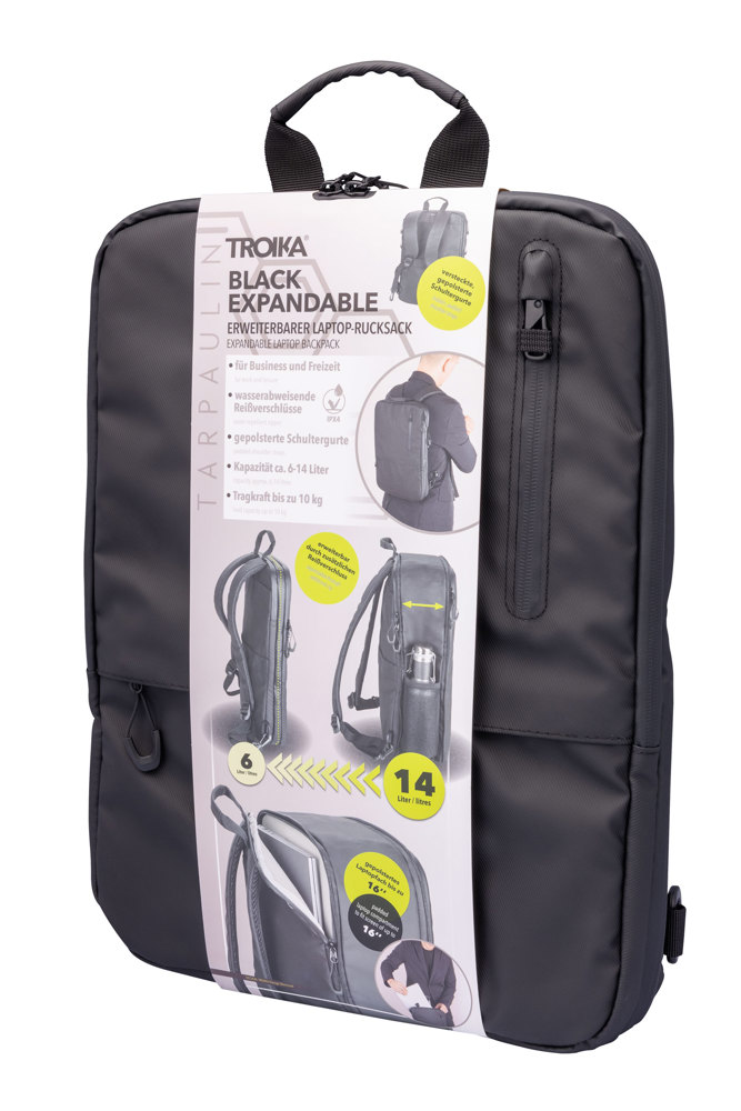 TROIKA Laptop backpack TROIKA BLACK EXPANDABLE