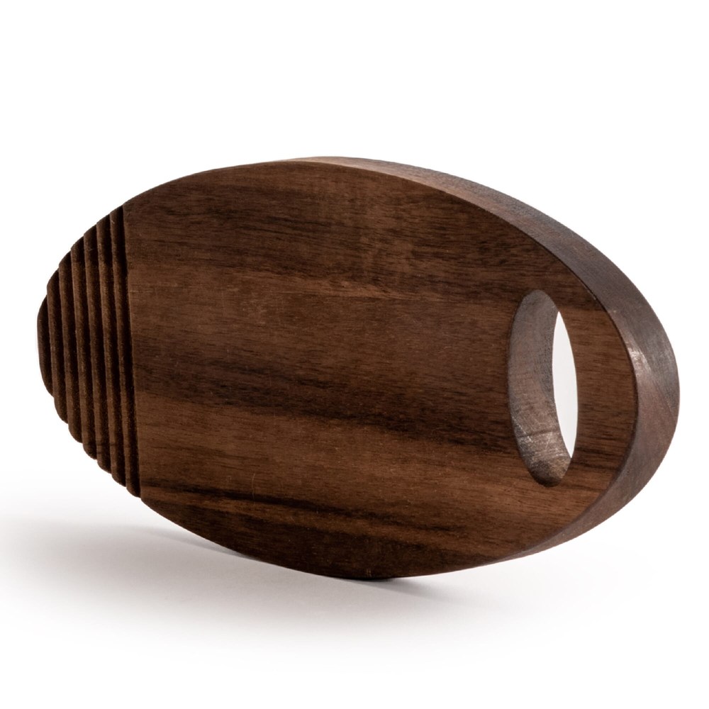 This small Ante cutting board has a striking shape. The oval-shaped model has cut-out stripes at one end and is made of dark robust (FSC) acacia wood. Ante is also very practical and beautiful when placed on the table. The cutting board is handmade and has small differences in shape and color, which you will only find with handmade products. It's good to know that wooden cutting boards are more durable and also kinder to knives.