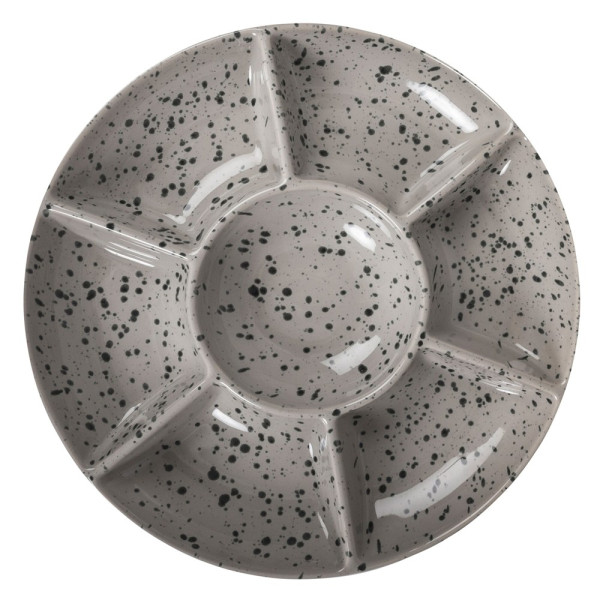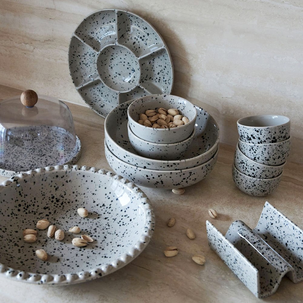 A plate with many uses. Use it to serve Tapas, Tacos and Fingerfood, there is room for it all. With this plate you can easily create more space on the table. The bowl has natural shades in beige/grey with a beautiful splash pattern in black. It is handmade ceramic, so the color and surface may differ per product. Each product is unique in its appearance. The Ditte series has a sleek and minimalist design.