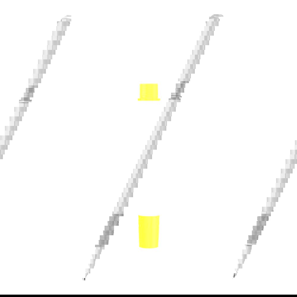 The S40 Grip ball pen is a popular pen because of the coloured part underneath printable clip which lends style and character to the pen and the grip on the pen which has the same colour as the clip. The white barrel can easily be customized with an imprint. It includes a pusher mechanism and a Toppoint jumbo refill with blue writing ink. The hardcolour pen is made of ABS and is made in Europe. From orders of 5.000 pieces, you can choose your own colour combination.