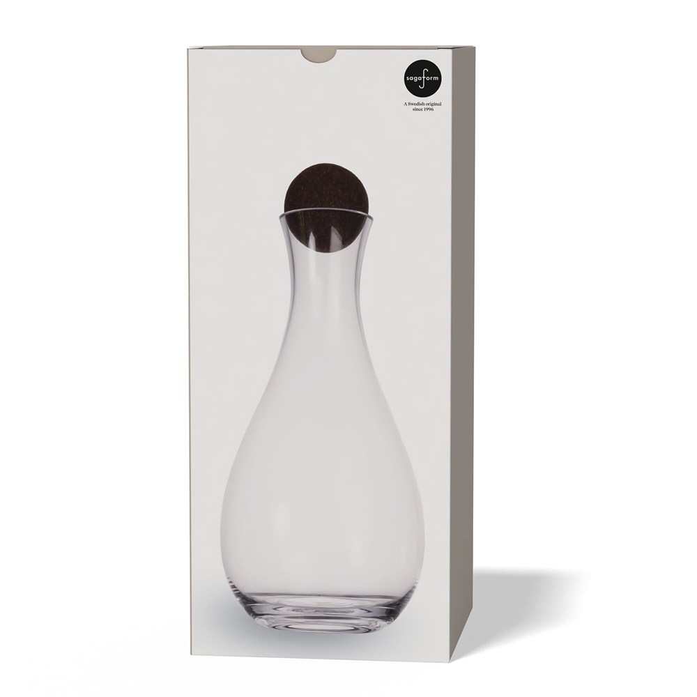 This glass carafe from the Nature series has a dark brown cork ball and combines durability with flowing shapes and mystery. Sagaform loves cork because cork is the most durable of all organic materials and completely impervious to liquid. The shape of the carafe is wavy and harmonizes well with the cork ball.