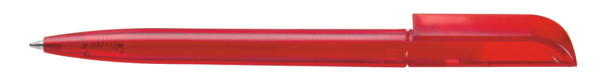 Twist ballpoint pen with transparent frosted housing.