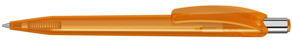 Retractable ballpoint pen with transparent glossy housing and plug. Push-button silver glossy.