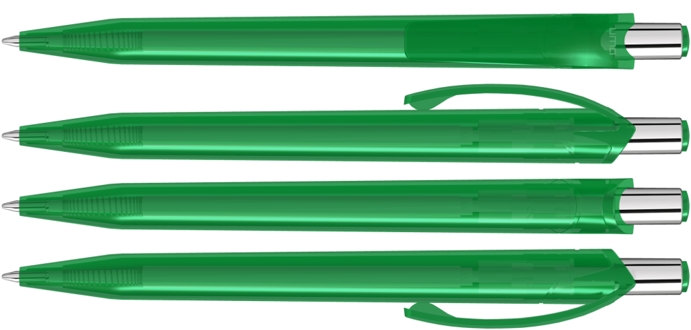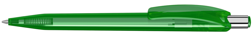 Retractable ballpoint pen with transparent glossy housing and plug. Push-button silver glossy.