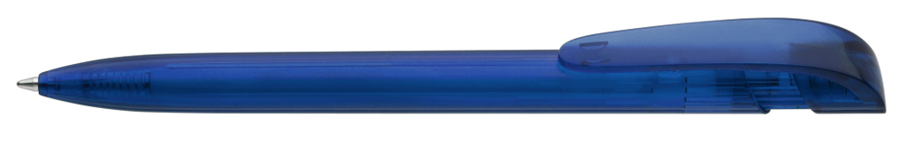 Retractable ballpoint pen with transparent glossy housing and wide curved clip button. more