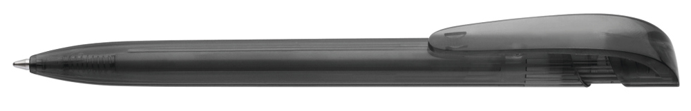 Retractable ballpoint pen with transparent glossy housing and wide curved clip button. more