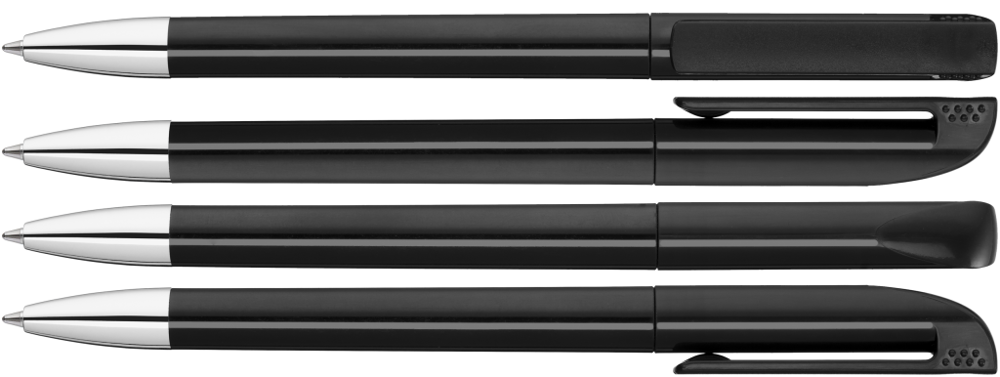 Twist ballpoint pen with opaque glossy housing, matt clip surface and tip chrome plated.