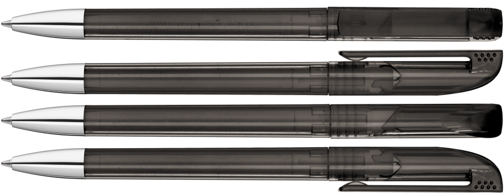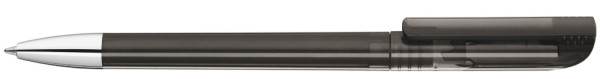 Twist ballpoint pen with transparent glossy housing, matt clip surface and tip chrome plated.