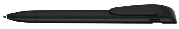 Retractable ballpoint pen with opaque matt housing, wide curved clip button and tip. more