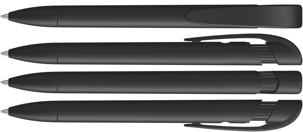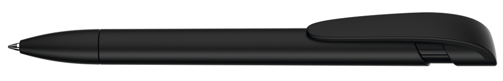 Retractable ballpoint pen with opaque matt housing, wide curved clip button and tip.