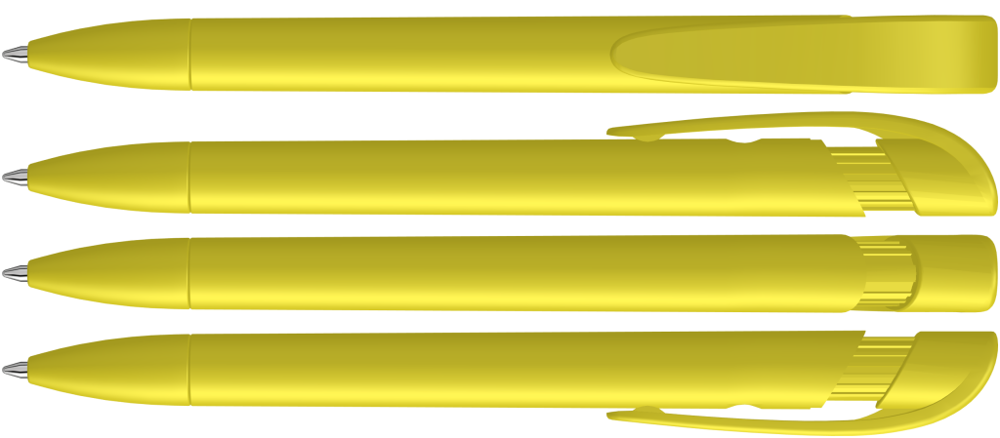 Retractable ballpoint pen with opaque matt housing, wide curved clip button and tip.