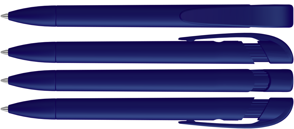Retractable ballpoint pen with opaque matt housing, wide curved clip button and tip.