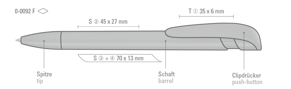 Retractable ballpoint pen with opaque matt housing, wide curved clip button and tip.