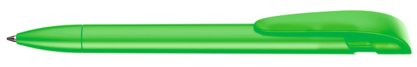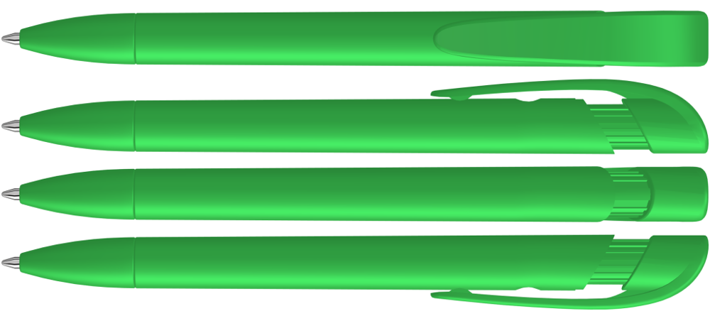 Retractable ballpoint pen with opaque matt housing, wide curved clip button and tip.
