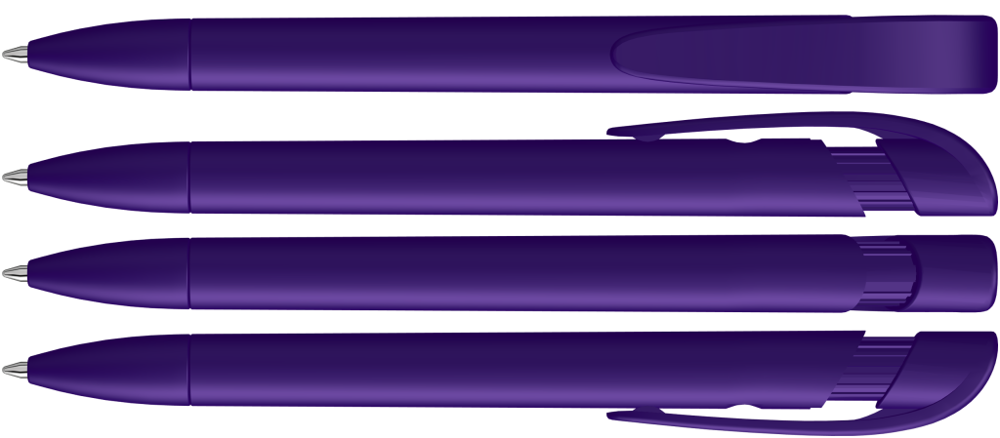 Retractable ballpoint pen with opaque matt housing, wide curved clip button and tip.