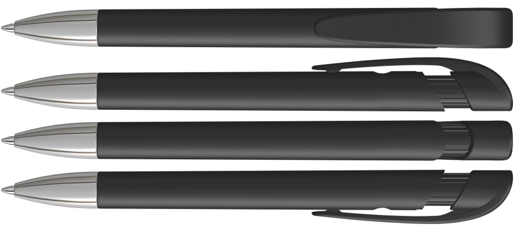 Retractable ballpoint pen with opaque matt housing, wide curved clip button and tip chrome plated.