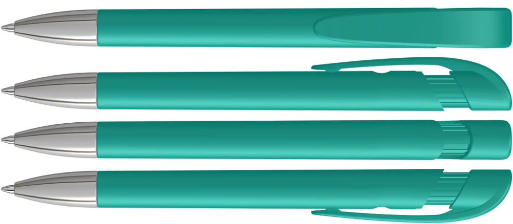 Retractable ballpoint pen with opaque matt housing, wide curved clip button and tip chrome plated. more
