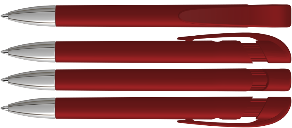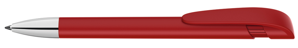 Retractable ballpoint pen with opaque matt housing, wide curved clip button and tip chrome plated.