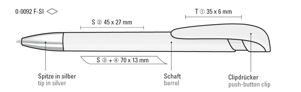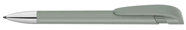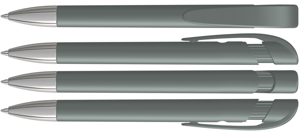Retractable ballpoint pen with opaque matt housing, wide curved clip button and tip chrome plated.
