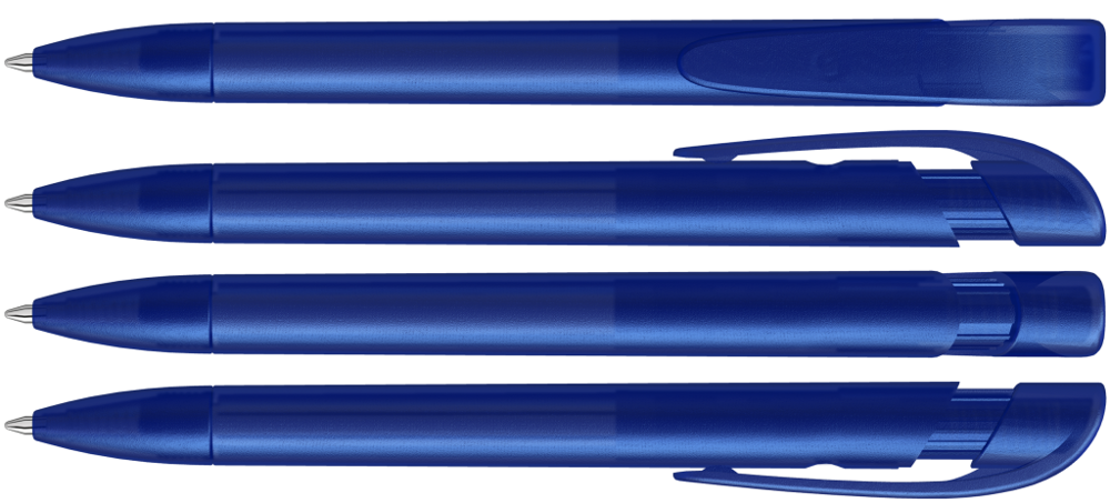 Retractable ballpoint pen with transparent frosted housing, wide curved clip button and tip. more
