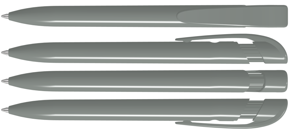 Retractable ballpoint pen with opaque glossy antibacterial housing and wide curved clip button. The antimicrobial additive of silver ions, tested according to ISO 22196:2011, gives the plastic an antibacterial effect that reduces the adhesion and settling of bacteria or pathogens on the surface of the writing instrument by 99.99%.