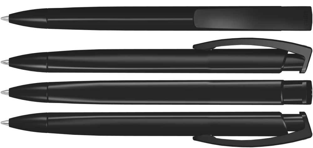 Retractable ballpoint pen with opaque glossy triangular housing. more