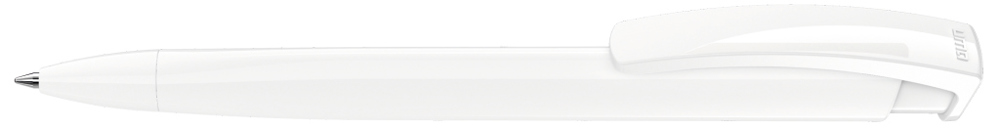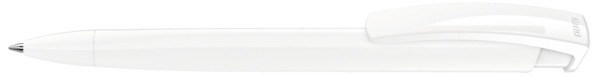 Retractable ballpoint pen with opaque glossy triangular housing.