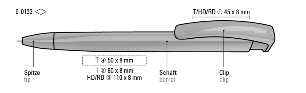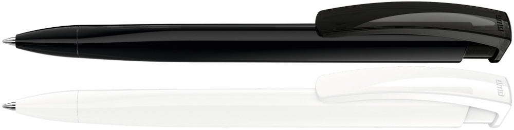 Retractable ballpoint pen with opaque glossy triangular housing. more