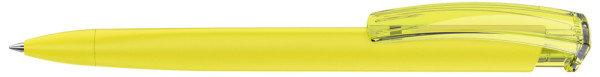 Retractable ballpoint pen with softtouch triangular housing and transparent glossy clip. more