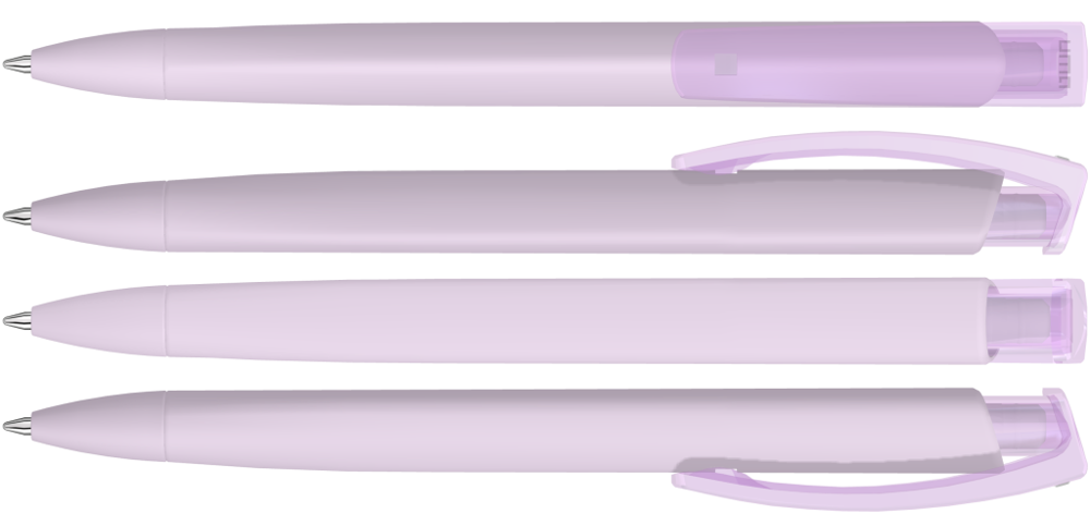 Retractable ballpoint pen with softtouch triangular housing and transparent glossy clip. more