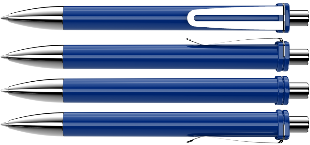 Retractable ballpoint pen with opaque glossy housing and clip holder. Wide flexible metal clip, metal tip and metal push-button chrome plated.