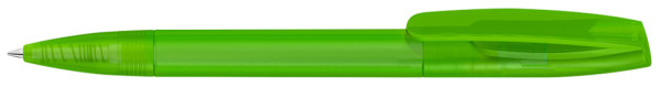 Twist ballpoint pen with transparent frosted housing.