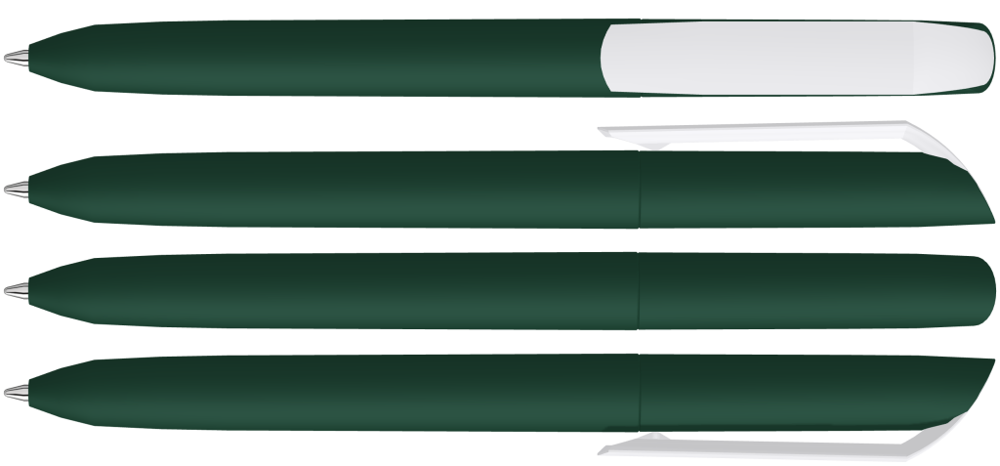 Twist ballpoint pen with softtouch housing and opaque glossy clip in white.