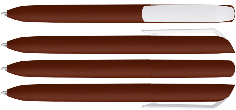 Twist ballpoint pen with softtouch housing and opaque glossy clip in white.