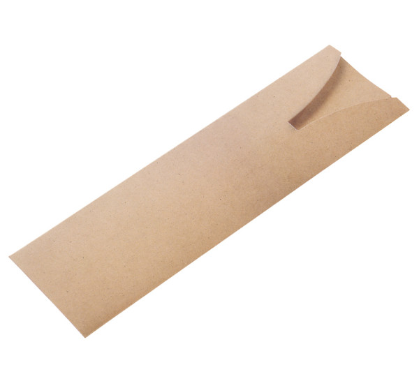 Natural cardboard case made of FSC® certified cardboard for one writing instrument, with printed recycling information on the back. Colour variations may occur due to the recycling process.